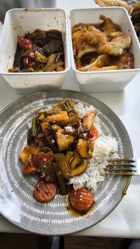 Wirklich sehr lecker und schnell fertig. Die Portionen sind auch gut. Bin begeistert und mein Partner auch. Nur schade dass die Speisekarte für mich schwer hier zu lesen ist online, da wäre eine richtige, statt einem Foto gut. Und die Ente war leider nichtmehr knusprig, da wäre es gut wenn die soße separat wäre, wie beim Hühnerfleisch. Aber wir holen in jedem Fall nochmal dort essen. (vor Hunger, leider kein Foto gemacht😂beim nächsten Mal dann. Edit:Foto vom nächsten Mal nun hinzugefügt haha) Die Verkäuferin (oder Köchin, sie hat jedenfalls mir dass Essen übergeben) war etwas unfreundlich hatte ich den eindruck aber Naja dass essen war super😊 Achso und wartezeit war 20 min. Hab telefonisch...