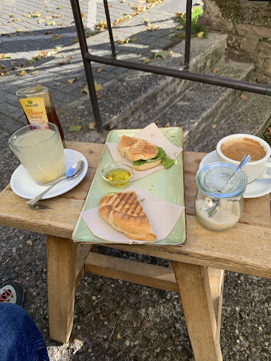 Read moreSchnuckeliges Café mit kleiner Sonnenterrasse, hausgemachtem Kuchen und fantastischen Panini. Für Vegetarier/ Veganer gibt's auch viel Gutes hier, auf Wunsch wird Kuhmilch durch Hafermilch ersetzt. Ich bin zwar nicht vegan, mag aber Hafermilch sehr. Köstliche hausgemachte Getränke, liebevoll angerichtet. Sehr freundliche Bedienung und Stammgäste. Habe dort länger verweilt als geplant, u.a. weil es so praktisch ist, das Fahrrad direkt neben meinem Tisch zu haben und weil es ein besonders...