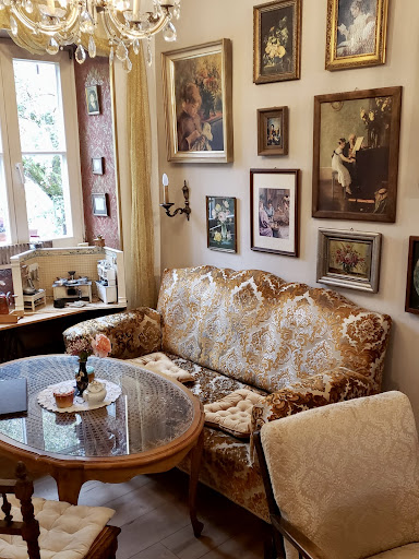 Die Besitzerin teilt ihr liebevoll eingerichtetes Wohnzimmer mit ihren Gästen. Sie reicht kleinere selbst zubereitete Speisen und selbst gebackenen Kuchen. Passend zur Umgebung fühlt man sich hier in „gute alte Zeiten“ zurückversetzt. Das liebevoll eingerichtete Gastzimmer wirkt wie ein kleines Heimatmuseum. Von SpielKüchen über historisches Küchenmaterial und allerlei Gebrauchsgegenständen wandern die Augen durch den Raum. Ständig entdeckt man Neues. Die Kuchentheke ist umfangreich und einladend. Vom Latte Macchiato über MilchKaffee zum Espresso werden verschiedene Kaffeespezialitäten angeboten. Besonders positiv ist uns die sehr saubere, gepflegte und mit Hygieneartikeln ausgestattete Toilette aufgefallen. Die Besitzerin ist auch zu einem gemütlichen Plausch bereit und es macht in diesem Ambiente einfach Spaß einige Zeit...
