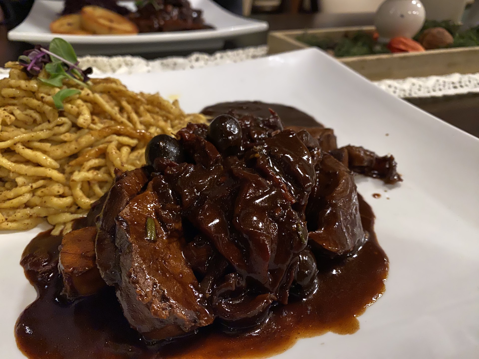 Update: Leider war der letzte Besuch eine Enttäuschung. Fing schon mit der Reservierung an und hörte beim schlechten Service auf. Bei meiner Reservierung um 18 Uhr wurde ich gebeten, wenn möglich eine halbe Stunde vorher oder später zu kommen (da hätte mir schon ein Licht aufgehen können). Teilte mit, das ich eine halbe Stunde früher komme. 17 Uhr 30 angekommen, Tür verschlossen, erst durch winken und klopfen am Fenster wurde uns geöffnet. Als wir am Tisch saßen, kam eine Bedienung und gab uns die Speisekarte, nach höflicher Nachfrage ob ich eine Getränkekarte haben könnte, meinte sie, sie wäre neu und wisse nicht ob es eine gäbe. Nach einer Verzögerung bekam ich endlich die Getränkekarte. Nach einiger Zeit, haben wir die Bestellung aufgegeben und die neue Bedienung kam mit den Getränken an den Tisch, stellte alles an der Tischkante ab, und wollte schon verschwinden. Das sagte ich, dass ich eine Flasche Wein mit zwei Gläsern bestellt habe und ein großes Bier. Bekommen habe ich zwei Gläser (ohne Eichstrich!!!) Wein, das eine fast voll, das andere fast leer und ein kleines Bier. Kann ja passieren, aber leider wurde der Abend nicht besser. Als Vorspeise hatten wird Feldsalt, leider enttäuschend, riesige Blätter in Discounter-Qualität, zu wenig Dressing, und die Croutons knochenhart, aber nicht vom anbraten, denn die waren total weiß. In der Zwischenzeit kam eine größere Gesellschaft. Ab diesem Zeitpunkt war man nur noch Kunde zweiter Klasse. Das Hauptgericht Zwiebelrostbraten war geschmacklich ok, aber leider etwas zäh. Das habe ich hier schon viel besser gegessen. Auch die anderen Gerichte waren nur Durchschnitt. Die neue Bedienung kam garnicht mehr zu uns an den Tisch, da die beiden anderen Bedienungen, die im Übrigen sehr freundlich und nett waren, auch schon mitbekommen haben, daß die Neue total überfordert ist, und daher mussten wir Ewigkeiten auf den Esspresso und die Rechnung warten, da die beiden Anderen natürlich voll im Stress mit der Gesellschaft waren. Die Schuld für dieses Service-Desaster gebe ich nicht der Neuen, sondern ihrem Chef. Ich kann doch nicht jemand so ins kalte Wasser schmeißen, ohne Schulung und Anlernen. Ich habe auch nichts dagegen Geld zu verdienen, aber wenn sie zu uns Kunden fair gewesen wären, hätten sie schon bei der Reservierung darauf aufmerksam machen können, das es wegen der Gesellschaft zu Verzögerungen kommen kann, dann wäre ich lieber ein anders mal gekommen. So werd ich vielleicht gar nicht...