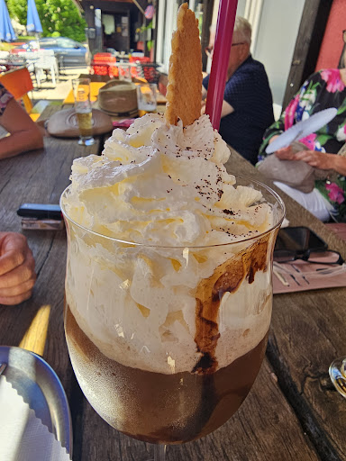 Schwanke zwischen 3 und 4 Sternen mit Tendenz zu 3. Warum? Positiv, man kann draußen sitzen in bequemen Stühlen und Schatten. Es gibt eine Eis und eine Getränkekarte wobei tatsächlich die Getränkekarte mehr Inhalt hatte wie die Eiskarte. Bedienung war soweit auch freundlich und schnell. Was mich zum Punktabzug brachte war das Eis selber. Das war mein erster Erdebeerbecher mit Nusseis. Hatte ich noch nie und hier sollten Allergiker aufpassen und nachfragen. An die Betreiber, bitte ändert das oder fragt zumindest nach. Ich erwarte von nem Erdbeerbecher, Vanille sowie Erdbeereis vielleicht auch noch Joghurt, aber kein Nuss. Passt zumindest nach meinem Geschmack...