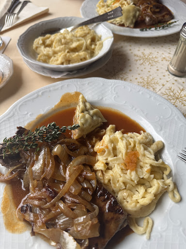 Read moreWir waren heute im Deutschen Kaiser in Heubach essen. Es war ein richtig gelungenes Essen dank der super netten Bedienungen und dem guten Essen. Der Platz am Fenster war herrlich. Zuerst bekamen wir einen Gruß aus der Küche, verschiedene Brite und Griebenschmalz. Nicht zu viel, um schon vor dem Essen satt zu sein, gerade richtig. Der anschließende Salat war lecker, von allem war etwas dabei. Das Hauptgericht, der Zwiebelrostbraten, war ein Traum! Das Fleisch zart, medium wie bestellt, die handgeschabten Spätzla das Highlight. Selten, eigentlich noch nie, haben wir so gute Spätzla bekommen. Auch das zusätzlich bestellte Gemüse war hervorragend. Blumenkohl, Rosenkohl, Möhren, Zuckererbsen, Zucchini und Kohlrabi, mit gerösteten Mandeln abgerundet, schmeckte unglaublich gut. Zum Nachtisch bestellten wir Affogato al caffé, Espresso mit einer Kugel Vanilleeis. Ein gelungener Abschluss. Die Atmosphäre im Lokal war sehr, sehr gut, nicht viele Tische, kein Stress durch laute Gespräche, sehr entspannt und angenehm. Wir werden jetzt öfter kommen! Vielen Dank für dieses wunderschöne und wohlschmeckende...