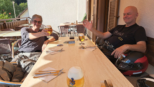 Read moreVorab: die Rezession wird bissi länger. Die Gastfreundschaft der Familie Bernauer ist nicht zu toppen. Wir sind mit drei Motorrädern angereist und hatten zwei Übernachtungen als Basislager für Touren durch den Südschwarzwald gebucht. Der Empfang war ehrlich freundlich und herzlich, nicht augesetzt, wie man es oft erlebt. Herr Bernauer hat für unsere drei Bikes extra eine seiner Garagen freigeräumt, damit unsere Schätzchen trocken und sicher untergebracht waren. Die Zimmer sind einfach aber tiptop und sehr sauber. Das erste Abendessen vor Ort war sensationell. 2 x Schweinestaek in Rahmsosse und einmal Hackbraten. Suuuuuper. Service extrem freundlich, aufmerksam und trotzdem locker und entspannt. Das Frühstück am nächsten Morgen war ebenfalls sensationell. Ca. 15 Brötchen für 3 Mann (wir haben nur 2 pro Nase geschafft), jede Menge Wurst, Käse, Marmelade, Joghurt, sehr guter Kaffe usw...von allem mehr als reichlich. Am Abend nach der Tour hatten wir dann 3 x Wildsau mit Bräggele...Herr Bernauer ist ein begnadeter Koch. Hier gibt's ehrliche, unglaublich hochwertige Küche ohne unnötigen Schnickschnack zu sehr fairen Preisen. Die Wildsau war das beste Wildschwein, das ich bisher gegessen habe. Die Portionen sind mehr als reichlich, das Bier wird frisch gezapft und auch wenn Frau Bernauer nicht selbst bedient, ist der Service absolute Spitze. Wir haben heute beschlossen, dass wir den Landgasthof Hirschen nun jedes Jahr über ein langes Wochenende besuchen werden. Wir waren das erste Mal da und haben uns sofort sauwohl gefühlt. Hier stimmt alles rundum. Und die Einzelzimmer sind mit ca. 55€ pro Nacht inkl. Kurtaxe wirklich ihr Geld wert...wenn ich 7 Sterne zu vergeben hätte, würde ich sie der Familie Bernauer geben! Biker, kommt hierher, der Spot ist ideal für Touren im Südschwarzwald. Und das Aussenherum hier im Hirschen ist einfach nur...