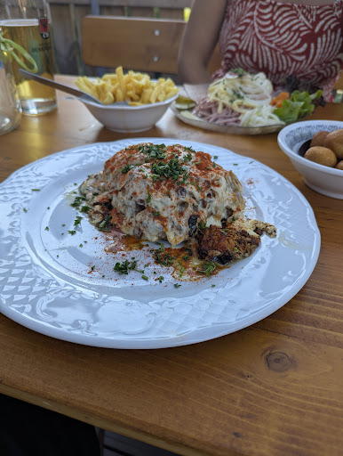 Read moreEs ist ein Hof der in einer schönen Landschaft außerhalb von Ortschaften liegt. Parkplatz findet man da auf jeden Fall. Der Gasthof entspricht der typischen 70 er Jahre, man fühlt sich in der Zeit zurück versetzt. Obwohl es sehr voll wahr und wir ohne Reservierung da waren, hat man es uns ermöglicht einen Platz zu bekommen. Das Essen war super lecker. Der Hirschrücken butterweich und angenehm gewürzt. Das Rumpsteak medium, wie gewünscht und auch sehr zart. Als Beilagen gab es selbstgemachte Kroketten, Kartoffelknödel und Rotkraut. Die Kroketten und Knödel waren super lecker. Das Rotkraut schmeckte wie bei Oma. Das Preis Leistungsverhältnis ist hervorragend. Die Betreiber sind sehr freundlich und um einen bemüht. Wenn wir wieder mal in dieser Gegend sind , ein muss dahin...