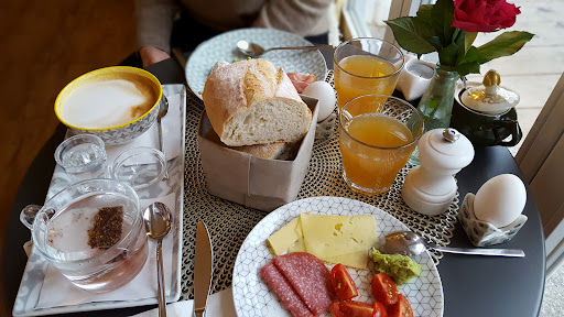 Read moreWir waren mit 10 Personen zum brunchen dort. Habe 2 -3 Wochen vorher reserviert. Das Ambiente ist schnuckelig und fein.Wir hatten den großen Tisch in der Mitte. Als wir kamen war der Tisch auch schon hergerichtet. Fein... Zu fein für mich. Eine kl.Wurst und eine kl. Käseplatte. 2 kl Gläser mit Obst und 2kl. Mmit Müsli. Wir konnten auch nachbestellen. War im Preis von 18.50 mit drin. Was nicht drin war Kaffee, Eier, Getränke. Gut... finde das viel zu teuer, aber könnte ich mit leben. Womit ich Mühe hatte... ca. 30 Min. vergingen bis wir 9 von 10 Kaffee hatten. Einer wurde vergessen und dauerte nochmals 10 Min. Über 30 Min. bis 9 Eier da waren. Ich kenne Personen da wird eine Person nicht satt von dem was auf dem Tisch stand für 10 P. Über 20 Min. bis Wurst und Käse geliefert wurde. Ich habe eingeladen und die Gäste haben nicht zugegriffen aus Anstand niemandem etwas wegzunehmen.So wenig war auf dem Tisch. Obwohl wir uns viel Zeit für den Brunch genommen hatten...der Nachschub funktionierte zu langsam. Fazit , sehr lecker, sehr schön, sehr guter Kuchen und Torten. Viel Zeit mitbringen und nicht mit mehr...