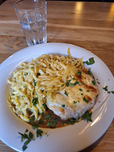 Read moreThe menu has pizza, schnitzel and pasta among other things. The garlic spaghetti was OK, but not worth ordering a second time. My wife had the salmon noodles with spinach in a cream sauce. The noodles and spinach were OK but the fish could have been better. Overall the food people were getting looked good, and the pizzas and schnitzels were mostly what we saw people eating. The restaurant has a good ambiance and is an OK choice for...