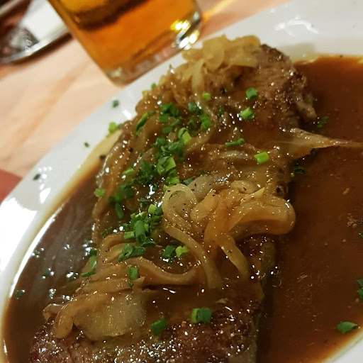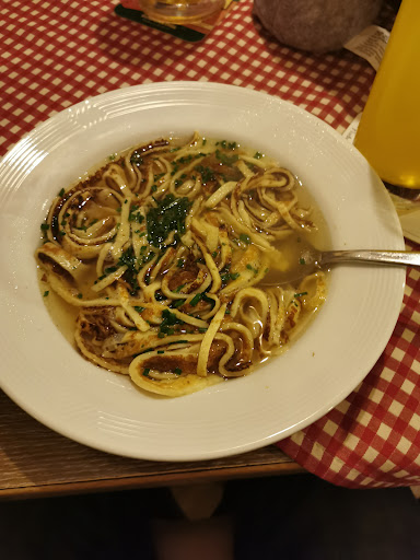 Read moreUrige alte Gaststätte mit relativ großen Portionen, aber dennoch teuer. Die ältere Dame und die kaum deutsch sprechende Servicekraft könnten ein bisschen schneller und vor allem die jüngere Dame auch ein bisschen freundlicher sein. Ein "Hallo, bitte, danke oder auch guten Appetit" sollten doch schon drin sein. Das Essen war durchschnittlich, das panierte Kotelett war gut, die Spätzle eher fad und die Sauce dazu ziemlich dünn im Geschmack. Der Kartoffelsalat war zwar frisch und selbst gemacht, aber sehr säure lästig, denke da würde Essigessenz anstelle eines Brandweinessig benutzt. Das Gyros war zu fettig und die wilden Kartoffeln laut Karte waren Pommes!? Das Züricher Geschnetzeltes war OK.