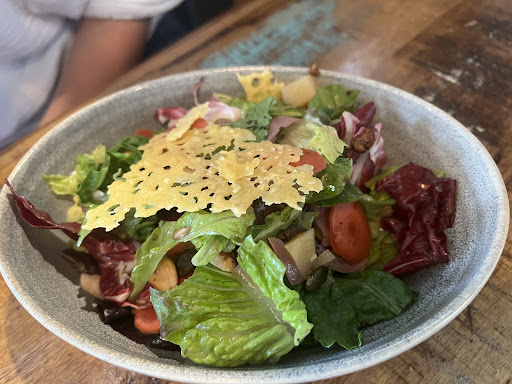 Read moreIch hatte einen Gutschein erhalten und wir waren heute zum ersten Mal hier. Wie ich mitbekommen habe, will sich der Inhaber aus dem Tagesgeschäft zurückziehen und nur noch Catering und Feiern anbieten. Somit war es an der Zeit, meinen Gutschein noch zu "verzehren" Wir hatten 4x den Burger. Dieser war mit einem Bio-Rindfleisch Paddy, Landkäse, frischem Salat, Tomaten, Zwiebeln und einer leckeren Soße angerichtet. Dazu wurden Rosmarin Kartoffeln mit Ziegenkäse-Tzaziki gereicht. Alles war durchweg lecker und heiß. Der Preis lag bei knapp 17 Euro. Dazu gab es für jeden ein Getränk, so dass wir auf knapp 85 Euro kamen. Die Bedienung war nett. Wir hätten uns nur mehr Präsenz und etwas mehr pfiff gewünscht. So wurde uns der Burger erst auf Nachfrage genauer erklärt. Draußen waren auch mehrere Tische, aber leider war es heute etwas windiger und nicht so warm zum draußen sitzen. Zumal alles offen ist. Im Innenraum war es möglich auf Polsterstühlen oder Bänken Platz zu nehmen. Danke an das Team, für das...