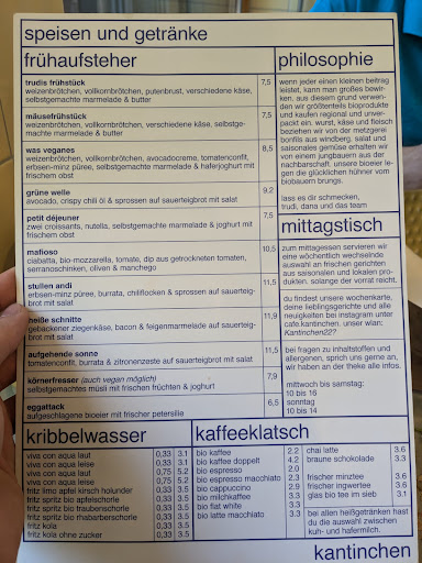 Read moreIch habe mittags das Kantinchen besucht . Erstmal das zu finden war etwas schwierig. Aber als ich da in den Hof war schon mal echt begeistert. Die super schön. Wenn das Wetter mal mitspielen würde könnte man wunderbar draußen sitzen. Richtig süß. Man merkt mit wieviel Liebe da schon eingerichtet wurde. Ich war hin und weg. Im Lokal selbst schießt sich das nahtlos an . Einfach nur richtig schön. Ich wurde sehr freundlich begrüßt und auch prompt bedient. Man fühlt sich wirklich willkommen. Hab mir ein Gericht von der Tageskarte bestellt. Offensichtlich wurde es frisch und mit Liebe zubereitet. Kleines "Manko "die Portion war etwas Übersichtlich . Aber gut ich solle etwas weniger Essen;-) . Zu meiner Überraschung war ich tatsächlich satt. Das Kantinchen ist wirklich eine schöne Adresse um eine schöne Zeit zu verbringen. Leckeres Essen mega tolles Ambiente. Passt einfach. Vielen lieben Dank an das tolle Team. Ich komme sehr...
