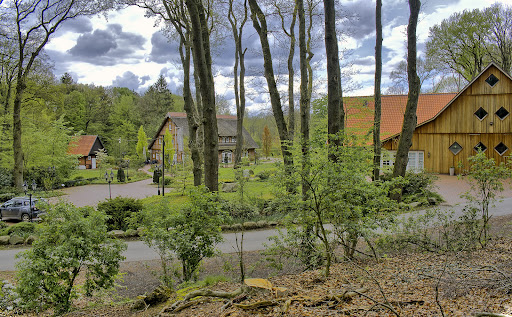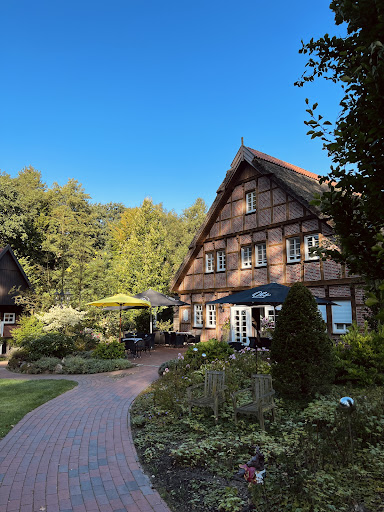 Die Lage und Umgebung ist einfach nur traumhaft. Wunderschön naturbelassen und ruhig mit tollen Fachwerkhäusern. Es ist sogar draußen ein schöner Bereich (mit Hüpfburg) zum Spielen für Kinder hergerichtet. Das Restaurant ist auch toll eingerichtet und die Anlage ist sehr gepflegt. Umso mehr bin ich enttäuscht vom Personal. Es ist zu erwähnen, dass zwar einige Gäste da waren, aber es sich noch um eine überschaubare Anzahl handelte. Zunächst dauerte es etwas bis wir überhaupt in Empfang genommen worden sind, was zwar ärgerlich, aber verkraftbar war. Als wir dann einen Sitzplatz bekommen haben, merkte man direkt dass die Kellner total umgeschult und unstrukturiert waren. Die Kellnerin kam zum Tisch und fragte was wir denn essen wollten, hatten aber noch nicht einmal eine Speisekarte erhalten. Bis wir diese dann erhalten haben dauerte es etwas 5 bis 10 Minuten. Wir haben uns dann ein Schnitzel + Pommes mit extra Majonaise und frischen Spargel + Kartoffeln mit extra Schinken bestellt. Die Karte ist im Speisebeteich zwar klein, enthält aber viele ansprechende Speisen. Das Essen kam relativ schnell, was uns freute. Doch auf das fehlende Besteck mussten wir dreimal drauf hinweisen. Das Besteck wird ja in der Regel als erstes gebracht. Als wir dem Kellner dann noch mitteilten, dass die Majonaise und der Schinken fehlten, huschte er davon und kam dann ca. 5 - 10 Minuten später an und brachte uns Schinken und Sauce Hollandaise. Auf die Majonaise müssten wir dann nochmal 5 Minuten warten. Da hatten wir die Pommes schon so gut wie auf. Das Schnitzel schmeckte sehr gut. Lob an den Koch. Doch der Spargel war leider noch bissfest und Potenzial für eine geschmackliche Steigerung ist auch noch vorhanden. Sehr ärgerlich. Wir beobachteten auch die anderen Gäste. Bei denen lief anscheinen auch nocht alles glatt. Auch die Kommunikation zwischen der Bedienung und den Gästen lässt sehr zu wünschen übrig. Essen und Getränke werden wortlos auf den Tisch gestellt und schnell "verdrückt". Als wir zahlen wollten dauerte es auch einige Zeit bis jemand zum kassieren kam. Wir haben heute kein Trinkgeld gegeben weil wir mit dem Service nicht zufrieden waren. Das passte dem Personal anscheinend so gar nicht da er nach dem kassieren einfach wortlos, grantig davon lief.