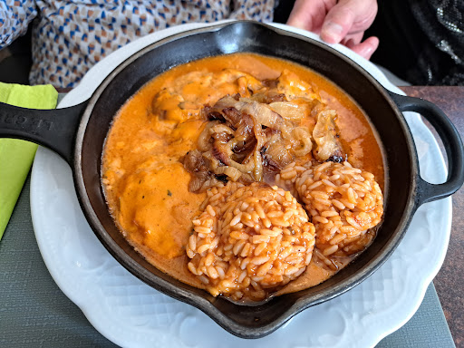 Read moreLetzten Sonntag sind ich und meine Freundin hier zum Essen eingekehrt. Wir waren kurz nach dem das Restaurant geöffnet hat da und stellten schnell fest, dass bereits viele Tische belegt waren. Zum Glück konnten wir noch einen freien Tisch ergattern. Eigentlich ein gutes Zeichen oder? Das Personal welches uns zum Tisch begleitete war freundlich. In die Karte brauchten wir eigentlich nicht schauen, da wir beide Hunger auf Gyros überbacken hatten. Die Bestellung konnten wir zügig aufgeben und der Vorspeisensalat sowie die Getränke kamen ebenfalls schnell bei uns an. Der Salat war gut, aber nichts besonderes. Komisch, das Personal welches die Speisen servierte, war nicht mehr so freundlich wie der andere Kellner. Schnell darauf kam auch schon das Gyros. Leider waren wir beide von dem Gyros enttäuscht. Die Metaxasoße war sehr fad gewürzt. Ich würde eher sagen, dass sie gar nicht gewürzt war. Der rote Reis war ebenfalls geschmacklos. In der Soße waren leider auch nur Dosenpilze verarbeitet. Die großen Tomatenscheiben passen aus meiner Sicht auch gar nicht dazu. Wenn dann bitte kleinere Cherry Tomaten oder ähnliches verwenden, die haben deutlich mehr Geschmack. Pilze esse ich gerne, aber wenn sie aus der Dose kommen kann man sie auch gleich weglassen. Für den Preis von rund 13€ habe ich schon deutlich besseres Gyros überbacken gegessen. Die überbackenen Kartoffeln, welche zusätzlich serviert wurden, waren Ok, brauchte ich aber nicht, da das Gericht schon ausreichend sättigend war. Nochmal werden wir dieses Lokal nicht besuchen. Warum dieses Lokal eine so gute Bewertung hat, können wir nicht...