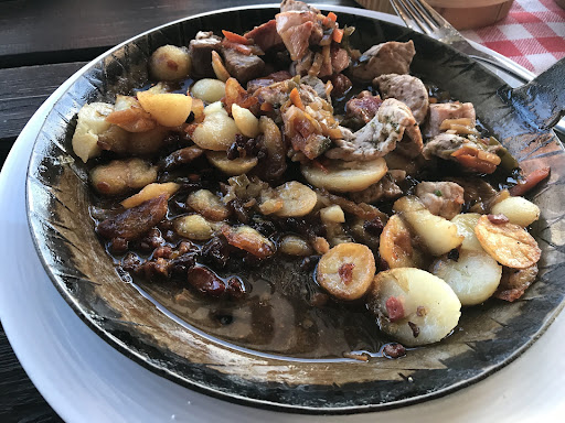 Ich habe mir Tiroler Gröstl mit 3 Sorten Fleisch bestellt. Es kam eine Pfanne in der bereits zu erkennen war, dass mit Öl nicht gespart wurde. Das Fleisch alleine hat wohl geschmeckt - nur musste man ja leider immer etwas von dem Öl mit essen. (Siehe Foto) Nach den ersten 3 Happen war dieses Gericht für mich ungenießbar - da es eigentlich Öl mit alten Bratkartoffeln + Fleisch hätte heißen müssen. Wer viel Öl mag, der sollte unbedingt dieses Gericht verlangen.
