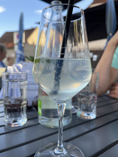 Schön gelegen direkt am Fahrradweg, sieht sehr einladend aus und wir hatten uns gefreut noch einen Platz für 4 auf der Terrasse zu ergattern. Leider mussten wir sehr lange warten, bis wir überhaupt bestellen konnten. Kurz danach kam ein Regenschauer runter, also hab ich mich mit den Kids im inneren untergestellt. Das Lokal war voll, sodass wir uns am ein Fenster an der Wand gestellt hatten. Hier wurden wir mehrfach harsch angefahren dass wir im Weg stünden. Eine anderer Stehplatz wurde uns jedoch nicht gezeigt. Nach dem Schauer wurde nur ein Platz für neue Gäste bereinigt. Daher habe ich mir selbst den Lappen geholt und unseren Tisch trocken gemacht. Danach erst kam unsere Bestellung an den Tisch, ohne ein Wort des bedauern oder ähnliches. Hausgemachte Limonade, secco wie auch Wein waren sehr lecker und vom Preis recht fair. Beim bezahlen wollte die Servicekraft sich selbst Trinkgeld anrechnen. Als wir dies zurückgefordert haben wurde verständnislos geschaut und etwas mürrisch davongetrottet. Leider für uns ein nicht so schöner...
