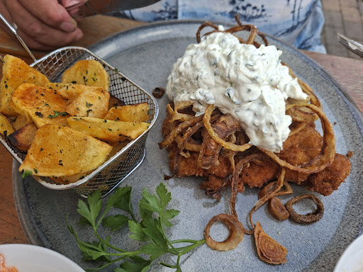 Hatte das Champignons Rahm Schnitzel. Anstatt der Pommes wollte ich Kroketten. Soweit so gut, Essen kam sehr schnell und es war lecker. Dann kam die Rechnung 2€ Extra weil ich die Kroketten anstatt der Pommes genommen hatte 🤬. War nirgendwo auf der Karte zu sehen und wurde bei der Bestellung nicht erwähnt. Hätte verstanden wenn ich die Kroketten zusätzlich genommen hätte aber es war als Ersatz.