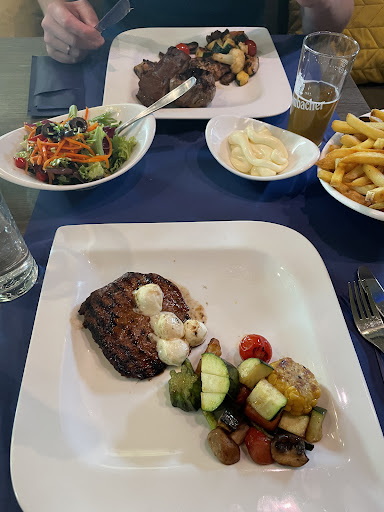Read moreIm Internet stand leider nichts davon, dass es nur einen kleinen Auszug aus der Karte gibt. Wir haben dann "notgedrungen" den Grill-Mix Teller genommen. Leider war das Hähnchen- und Rindfleisch total fettdurchzogen, das Schweinefleisch konnten wir nur essen, nachdem wir eine Soße nachbestellt haben, da es staubtrocken war. Die Sparerips, auf die wir uns gefreut haben, waren leider auch nur trocken. Schade, dass da an der Qualität gespart wird (oder am Koch), denn das Ambiente in dem renovierten Restaurant war einfach spitze und sehr schön gemacht. Auch der Kellner war sehr freundlich, zuvorkommend und einfach ein lustiger Typ! Also sind die beiden Sterne für das Design und für die...