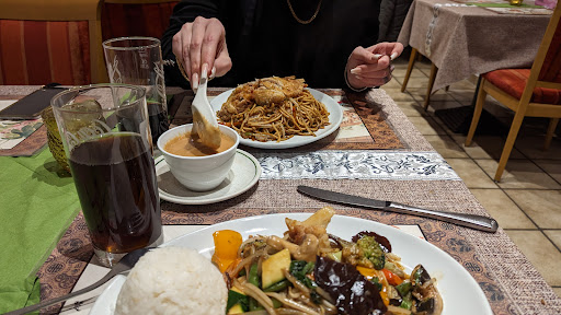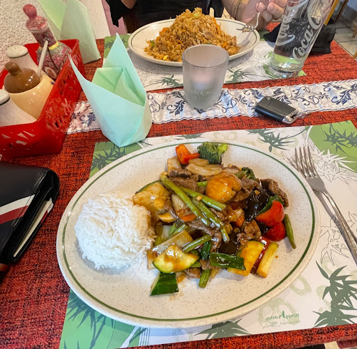 Read moreIch wüsste nicht warum dieser Laden überhaupt einen Stern verdient hätte, zumal wir am Ende noch eine saftige Rechnung von knapp 45 Euro gezahlt haben. Wir hatten eine Currysuppe welche die Konsistenz eines Grießbreis hatte. Eine mit Curry versetze, angedickte Brühe, welche bei Hauptgericht 2 unglaublicherweise als Currysauce serviert wurde. Die Frühlingsrolle war eine riesige bis zur Unkenntlichkeit frittierte Teigtasche, gefüllt mit matschigem Gemüse und ein bisschen Hackfleisch, serviert mit Süß saurer Sauce aus der Flasche. Der Hammer war die Tatsache, dass wir eine mit Fleisch gefüllte bestellten, im Endeffekt bekamen wir 2 Brösel Hack aus der Tasche. Hauptgericht 1 sowie 2 waren getränkt oder besser ertränkt in Öl und Fett, die angepriesene Sauce bestand lediglich aus mindestens einem Liter Sojasauce, das Gemüse wieder matschig. Die Lokation ist ein ausrangiertes Fußballclubhaus. Wäre ja nicht schlimm, wenn nur ein bisschen Herzblut in den Außenbereich gesteckt worden wäre, dem war definitiv nicht der Fall. Mir schien es eher als hätte man die erst beste Möglichkeit ergriffen, den kulinarisch Unerfahrenen und den ewig schluckenden diesen Fraß vorzusetzen. Mir ist schleierhaft wie dieses "Restaurant" zu 4,7 von 5 Sternen gekommen ist, aber ich tippe auf die allesessende Stammkundschaft, sprich den berühmten Sympathiebonus von denen so manches...