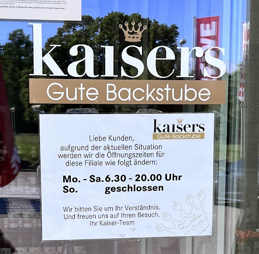 Ich muss schon sagen die sitz gelegenheit und das aussehen von innen ist wirklich sehr schön. Immer ordentlich, einziges problem was ich mehrmals hatte war das man etwas lange warten muss. Und ab und zu kommt es auch vor das andere Kunden sich vor drängeln aber das hat nichts mit Kaisers Gute Backstube zu tun. Das Essen ist sehr lecker viel auawahl und auch an getränke nichts auszusetzen. Immer...