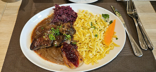 Wir waren am Valentinstag hier essen und ich war leider sehr enttäuscht. Es ist ne urige kleine Dorfwirtschaft die sich vom Ambiente sehr schön darstellt. Die Karte ist übersichtlich klein, was aber nicht störend wirkte. Wir bestellten für meine Begleitung einmal eine Sellerie/Apfelsuppe und als Hauptgang ein Damwildsteack mit Spätzle. Dieses Essen war ganz ok, obwohl ich mir in der Soße eher Wildpilze als ordinäre Champions gewünscht hätte. Doch nun zu meinem Essen, ich bestelle mir vorweg einen Feldsalat und als Hauptspeise Leberle mit Brägele. Meine Kritik beruht sich darauf, daß der Feldsalat nicht richtig geputzt war und sehr viele schwarze Blätter hatte🤮 Danach kamen die Leberle und ich muss sagen, ich hatte noch nie so schlechte Leberle gegessen wie in diesem Lokal. Zum einen kamen sie in einer sehr dunklen, geschmacksneutralen Soße daher die weder sauer noch würzig war und das schlimmste an der Sache war, die Leberle waren hart und trocken was nicht sein darf, wenn man weiß wie man so ein Gericht zubereitet! Nach meiner Kritik bei der Chefin, kam nur ein labidares Oh! Ich werde es weiterleiten. Ich gab über die Hälfte des Gerichtes zurück! Weil es war wirklich nicht genießbar. Keine Entschuldigung oder dergleichen und der vollen Preis wurde auch verlangt. So stelle ich mir eine gut Bürgerliche Küche nicht vor, deswegen in Zukunft, nein Danke zu...