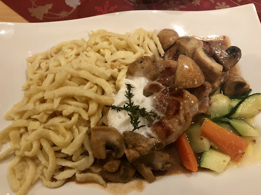 Was uns dann aber geboten wurde…schnelle Bedienung, leckere Schorle und eine wirklich gute Qualität der Speisen. Mein Sohn ist, seines Erachtens nach, ein selbsternannter Wurstsalatkenner (mit eigenen Rating)und Bratkartoffelnexperte. Die Brägele waren für ihn definitiv 5Sterne. Der Rest war auch auf den Punkt. Das Ambiente war ungezwungen. (Gruß geht raus an die zwei lustigen Omas am Nebentisch) Und als Bonus haben wir, zusätzlich eine wirklich gute Bratensauce bekommen.
