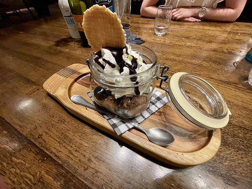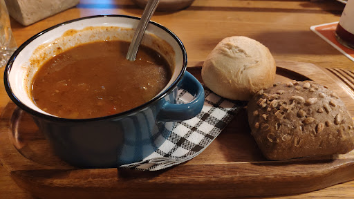 Negativ: -Die Karte ist komplett überladen und sieht aus, als hätte man die Karten von 10 verschiedenen Restaurants vereint. Extrem viel Werbung, im letzten Viertel kommen dann die tatsächlichen Speisen. Hier wurde sich im Stockphoto-shop ausgetobt, dass die watermarks fliegen... Auch gabs einige lustige Rechtschreibfehler wie der "Seelach" oder die tagliatelle für 8200€ :D -Die Gulaschsuppe an sich war lecker, aber die steinharten und (zum Glück) sehr seltenen Fleischwürfelchen darin hätten von einem Fertig-Dosenprodukt sein können. -Nudeln Aglio Olio & Garnelen: Garnelen waren sehr lecker und riesig! leider war buchstäblich nur öl an den Nudeln. Es fehlte viel Salz, pfeffer und Knoblauch, was recht tragisch bei so einem simplen Gericht ist. Komischerweise waren die wenigen knoblauch chips süß, und hatten sehr wenig aroma... Ich denke jedenfalls an Knoblauch zu sparen ist bei "Aglio"&Olio nicht wirklich sinnvoll. Man weiss ja worauf man sich einlässt. -Die Pizza meiner Begleitung war etwas klein und das Gemüse darauf fast roh. Der Teig war allerdings sehr gut. -ich hatte ein Glas Weißwein bestellt, leider bekam ich einen (sehr unpassenden) Rosé. Obwohl ich das dem kellner sagte und ich den Wein nicht trank stand er auf der Rechnung...
