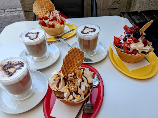 Während andere irgendwelche Pulver zusammen rühren und das ganze dann hausgemachtes Eis nennen, steht Toni zu Nachtschlafender Uhrzeit auf um sein Eis mit Frischesten Zutaten selbst herzustellen. Das sieht man und vor allem man schmeckt es auch. Für uns das beste Eis weit und breit. Das Preis- Leistungsverhältnis ist bombastisch. Für diese Qualität zahlt man woanders locker das Doppelte. Aber nicht nur das Eis ist hervorragend, auch der Service ist immer freundlich und es wird versucht jeden Kundenwunsch zu erfüllen. Die Eisdiele ist klein aber fein und im Hof sitzt man herrlich schön unter Weinreben und Haselnussbäumchen. Tischservice gibt es keinen, aber das stört uns überhaupt nicht. Die Vielfalt im Sortiment die hier geboten wird sucht Ihresgleichen. Es gibt immer wieder neue und auch Mal total "verrückte" Sorten. Es ist wirklich für jeden was dabei. Ganz neu gibt es jetzt sogar Hunde-Eis damit auch die tierischen Mitbewohner nicht zu kurz kommen. Ich kann dieses Eiscafe nur empfehlen und hoffe das Toni und sein Team uns noch lange lange erhalten bleiben. Übrigens kann man Toni und seinen Eisbus auch für alle Veranstaltungen mieten. Ob Firmenfeier, Hochzeit oder andere Festlichkeiten. Toni's Eis schmeckt immer und bringt italienisches Flair und...