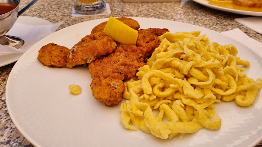 Read moreGetrĂ€nke und Bedienung war gut. Mein Wiener Schnitzel hat mit dem eigentlichen Gericht nicht viel gemeinsam. Matschige schlechtschmeckende Panade ohne Liebe, dickes zĂ€hes Kalbfleisch. Wiener Schnitzel kenne ich anders und wenn dies so betitelt wird sollte man auch keine schlechte Eigenkreation draus machen, denn wenn man dies in der Karte liest erweckte es bei einem Preis von 18,90 Euro Erwartungen. FĂŒr diesen Preis so eine QualitĂ€t an Essen zu bieten halte ich schlicht fĂŒr schlecht. Zudem war es nicht möglich sich ordentlich zu unterhalten, da dort ansĂ€ssige Stammtische jegliche Akustik ĂŒbertönten (an einem Dienstag abend). Kann das Restaurant nicht zwingend was dafĂŒr aber sorgte dafĂŒr, erschwerend zum Schreck des Essens, dass es weniger zum Verweilen noch zum Wiederkehren einlĂ€dt. Die Bedienung fragte mich am Ende ob es denn geschmeckt habe, was ich verneinen musste. Von ihrer sonstigen Routine abweichend fiel ihr spontan das Besteck vom Teller meines Tischnachbarn beim AbrĂ€umen. Eine Nachfrage weswegen, eine Weitergabe an höhere Stelle oder Koch blieb wohl aus, denn mein Vereinen ob es geschmeckt habe verstummte im Gebrabel der Stammtische. Ob der FĂŒlle von Restaurants in der Umgebung werde ich hier nicht mehr verweilen.