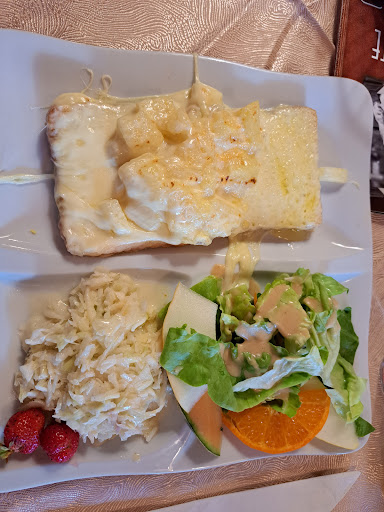 We also had lunch here and I can recommend the plate with dried meat and cheeses.