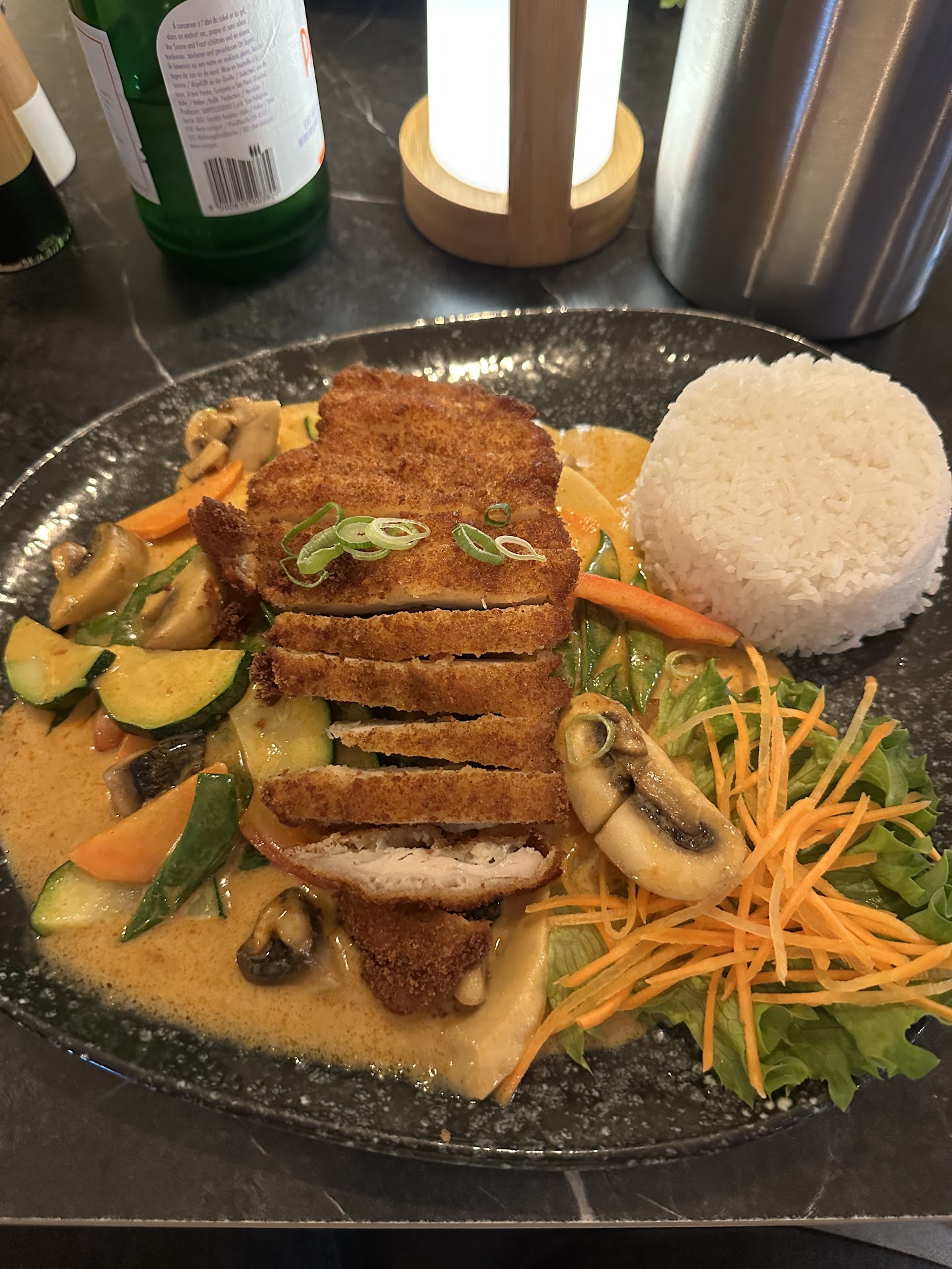 It's Saturday afternoon 3 pm, and just 2 of us, me and my husband decided to try out this newly-opened restaurant in our neighborhood - Wuerselen. Before I'd already read some of the reviews of Mangold and would personally like to see if the reviews are justified or if there's more to say..... Cut the story short, let's dig right in! Here I split into 3 categories -ambient, service, and food. The restaurant is nicely refurbished with a flare of Asian, tidy and clean, there's no disgusting smell of grease from the kitchen. I noticed that there's air conditioning hanging on the wall, I think this is thoughtful, especially in the summer it can get very hot in the room that are both walls fenced with big glass. For this, I would give 4,5 stars. Service???? In my view, the personnel are not professionally trained. For this particular dine-in experience we have encountered 3 persons, one who led us to the table and also brought the main course to us, one who brought us the starter and said bye to us, finally a lady who took us the order, brought us the drinks and other services, and she's the only one who my husband and I think is most professionally trained staff. Additionally, I would have to worry when I come in at peak hours, one word to sum up "Slow" 4,5 stars for the waitress, and 3 stars for the other 2 guys. Last, is the food. Well...........I didn't order any sushi or sashimi but from the wok. My husband ordered Tom Yam Gai (soup) and Lost Monk, soup is definitely too sweet, for a German and an Asian myself standard. I ordered Tom Chien and Pad Thai Garnelen. They are OK, one thing that can still be improved was the spicy sauce. It didn't go well with the food that I ordered. I give 3,7 stars for the food that we ordered. And 2 stars for the drink I ordered, the Calpico. It tastes like water with only a few drops of Calpico syrup, a big disappointment for me. I know by heart how it should taste! After all, I would still give 2 more tries with Mangold...