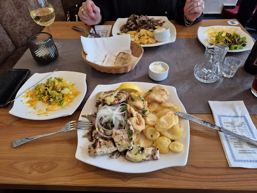 Sehr freundlicher Service und tolles Ambiente mit griechischen Figuren, abgeschnittenen Säulen und Aquarien. Bei der Musik würde ich mir mehr traditionelle griechische Musik wünschen. Würde das Ambiente noch mehr unterstützen ⭐⭐⭐ Der Vorspeisenteller war ein absoluter Traum! Sehr ausreichend und aromatisch! ⭐⭐⭐⭐⭐ Wir hatten Pizza, Kalamari (leider ohne Tentakelchen), Leber und einen Grillteller. Geschmacklich war alles sehr gut, auch der Beilagensalat samt Dressing top! Leider waren die Knoblauchkartoffeln ein bisschen zu kurz in der Fritteuse. Aber diese Kritik hat der Kellner sehr gut und sympathisch aufgenommen. ⭐⭐⭐⭐⭐ Die Sanitären Einrichtungen waren leider weniger gepflegt. Spinnenweben am Boden und eine Türklinke, die nur noch mit einer Schraube notdürftig befestigt war. Da besteht Renovierungsbedarf ⭐⭐