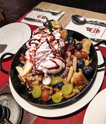 Good food, great atmosphere but they could really improve their service because it was extremely slow. we were the only table in the area (see photos). We waited at least 15mins for the waiter to come so we can order dessert, no one came so we got up and ask them for dessert menu. we waited another 5-10mins and so I finally got up the second time and see two waiters (one is waiting our table) chatting away and so I just ordered right there and asked for the bill right away because I don’t want to be waiting around any longer. Don’t get me wrong, the service wasn’t rude or anything which I love. I just think they could use a little more speed especially that they’re clearly not busy. With a little patience and a lot of time, I’d recommend this place definitely.