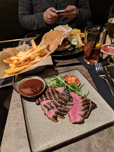 The flank steak I ordered was perfectly cooked. The meat was very flavorful and had a perfect crust. For being the cheapest cut on the menu, it was really delicious and affordable. Presentation of the dishes was superb, too. Also, the portion size of the fries was surprisingly large. The flavor of my Negroni was nicely balanced, maybe a bit too soft for my taste, but still very tasty.