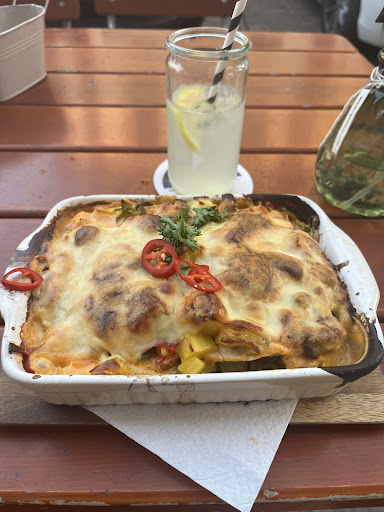 Die Bandnudeln waren übergart, und das Sojagranulat schien lediglich in Brühe aufgeweicht und direkt in die Auflaufform gegeben worden zu sein. Als ich auf Nachfrage meine Kritik äußerte – nämlich, dass das Granulat besser ausgedrückt und angebraten werden sollte –, hatte ich jedoch nicht das Gefühl, dass meine Meinung auf Interesse stieß. Immerhin: Die Schärfe des Gerichts war gut und entsprach der Kennzeichnung auf der Speisekarte.