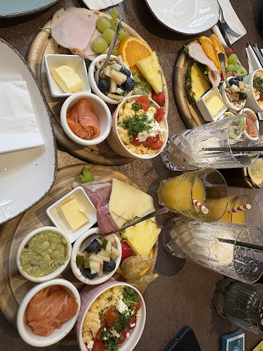 Read moreDas Essen an sich war gut, jedenfalls das, was wir erhalten haben. Wir hatten die Lover Frühstücksplatte bestellt. Diese kostet auch satte 34,90 €, da könnte man meinen, dass man auch etwas erwarten könnte. Wir haben uns mit für die Platte entschieden, da dort Serrano-Schinken dabei ist und mein Freund davon ein großer Liebhaber ist. Bekommen haben wir aber leider zwei Scheiben normalen Räucherschinken. Dieser hat auch gut geschmeckt, keine Frage, aber wurde uns ohne Kommentar als Serrano verkauft. Ebenso sollte Trüffelkäse und Maasdamer auf der Platte sein, davon war aber enttäuschenderweise auch nichts zu sehen. Stattdessen waren zwei Scheiben (wir vermuten Butterkäse) drauf. Die Avocado vom Fächer war ungünstigerweise total hart und unreif … den Avocadomash haben wir einfach gar nicht erhalten. Wahrscheinlich, weil keine reife Avocado vorrätig war. Aber all das bedauerlicherweise ohne irgendeinen Kommentar. An sich war das Essen schon gut und auch toll angerichtet, aber Dinge weglassen und austauschen ohne Kommentar geht einfach nicht. Vor allem hätte man das einfach bei der Aufnahme der Bestellung erwähnen können und einem preislich entgegenkommen können. Ich meine, es kann passieren, dass Lebensmittel ausgehen, aber dann sollte das auch dementsprechend kommuniziert werden und nicht der volle Preis verlangt werden für Kosten, die nicht zustande gekommen sind....