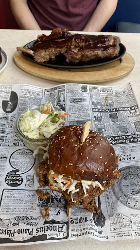 It was a really disappointing experience. I had high expectations about this restaurant, but unfortunately the reality was different… I ordered a pulled pork burger, which is one of my favorite dishes, and honestly, it was one of the worst I've ever tried. The cole slow salad tasted like nothing at all. My husband ordered ribs with BBQ and the disappointment when it arrived at the table was only worse than the disappointment when eating it… I don't understand how a place that looks so nice can serve food like that to the customer. The onion rings were extremely soaked in grease and the fries were half curly potatoes. Anyway, I wish our experience had been different, but it wasn't.