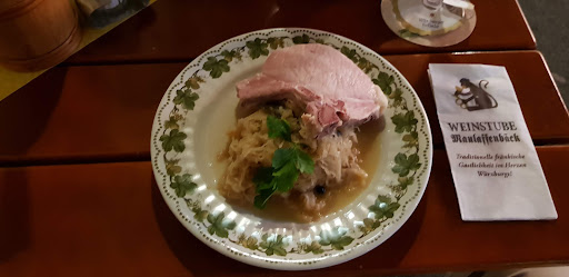 En la carta se encuentran especialidades de Franconia y vinos de la propia bodega. Como contigua al local se encuentra la charcutería Hein-Hofmann, nunca faltan carnes, embutidos y fiambres frescos y de excelente calidad. Hay algunas sopas, ensaladas, platos pequeños típicos (como diferentes salchichas y pastel de carne), quesos para acompañar el vino y - especialmente recomendada para probar cositas diferentes - una tabla denominada "Häckerbrotzeit" (la merienda o cena del viticultor) con distintos embutidos y un chupito de aguardiente para después... más tradicional imposible (por lo menos a mis abuelos les encanta!). Todos los platos son simples (en el buen sentido) y sabrosos, y también hay platos sin gluten y sin lactosa.
