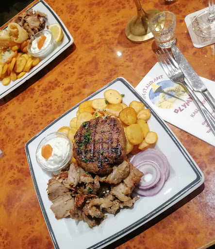 Read moreIm Olympia hat uns das Essen an sich recht gut geschmeckt und die Portionen waren auch in Ordnung, sofern man eine Vorspeise hatte. Den Kartoffeln fehlte für unseren Geschmack das Salz, leider gab es zu den Grilltellern keinen Salat, das Tsatsiki schmeckte eher wie aus dem Eimer und das zu den gegrillten Peperoni gereichte Brot war leicht angekokelt und so pupstrocken, dass es nicht einmal das Olivenöl aufsaugte. Dafür waren die Leber zart, die Kalmare saftig und die Metaxa-Soße ein Träumchen. Die Einrichtung ist eher etwas lieblos gehalten und die Holzstühle waren tierisch unbequem. Ich habe im Lokal gefroren, da die Außenwand an meinem Sitzplatz zugig war und aus Energiespargründen wohl nicht ordentlich geheizt wurde. Dem Service ist auch nach dem Auftragen der Hauptspeisen leider nicht von allein aufgefallen, dass zwei Besteckgarnituren am Tisch fehlten und unser Salz haben wir dann irgendwann auch einfach selbst besorgt. Unser Tisch wurde von unterschiedlichem Personal betreut, das auch sehr unterschiedlich kundenfreundlich agierte. Insgesamt schien mir der Fokus dann doch eher auf dem Umsatz als auf der Kundenzufriedenheit zu liegen. Als positiv kann ich noch hervorheben, dass es im Olympia "Basis-Grillteller" zu bestellen gibt, zu denen man nach dem eigenen Geschmack und Appetit noch weitere Zutaten hinzubestellen kann. Dadurch entfallen aufwändige Umbestellungen. Preislich ist es hier, auch gemessen am Standort, in Ordnung. Insgesamt für uns ein durchwachsenes Ergebnis somit teilweise...