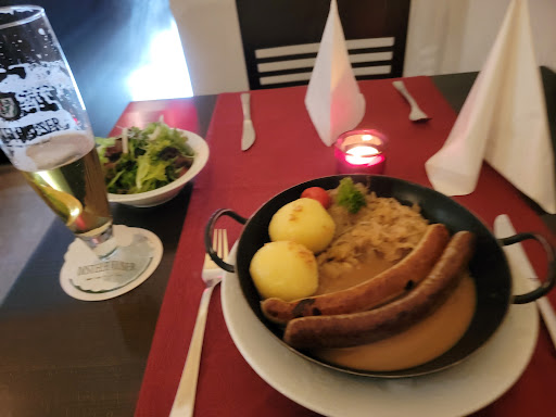 Unfortunately, the main course came before the starter. When we pointed it out, the main course disappeared back into the kitchen with an irritated "Oh,..." but without an apology and we were served the starter. However, the starter was not complete. We also had to ask for the cutlery. Well... cutlery and missing dishes were delivered. Again, without a word of apology for the inconvenience. And when we were done with the starter, the main course was put on the table within a few minutes. As you can guess, it was the main course that had previously been stowed away in the kitchen and had cooled in the meantime. We observed the same confusion (no cutlery and cold main course) at the other tables. Simply a pity. You know... the ambience could really be something, if the music was appropriate for the locality and the waiters didn't loudly stir their cutlery supplies, that apparently only belated make it...
