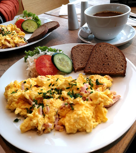 Read moreNachdem ich für einen Cappuccino und eine Portion Rührei mit Schinken ganze 9,25 € bezahlt habe, hätte ich erwartet, dass zur Zubereitung des Rühreis die frischen Eier in der Auslage verwendet werden. Dass es letztlich dennoch Fertig-Rührei aus der Tüte war, ist äußerst enttäuschend. Die beiden Damen hinter dem Tresen wirken freundlich aber sehr schwerfällig.