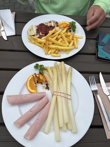 Read moreSehr ansprechende Räumlichkeiten. Das Gestrüpp auf den Tischen kann weg. Ich schlage kleinere Gestecke aus Kunstblumen, oder kleinere Vase mit einer Blume und etwas grünem vor. Schön, daß es draußen im Biergarten einen überdachten Bereich gibt, damit Raucher nicht im Regen stehen müßen. Das Essen war schön angerichtet. Für den Preis hätte Majo oder Ketschup inklusive...