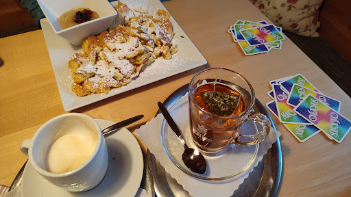 This lovely little café is the perfect stop on both rainy and sunny days: it's cozy inside and provides a great view of the mountains when sitting outside. The staff is super friendly, lightning-fast and bakes the best cakes we've tried in a long time. You can really tell everything is handmade with love here! We had a cappuccino, herbal tea, chocolate guglhupf cheesecake and lucked out completely as we coincidentally came in on Kaiserschmarrn Thursday! 🤤 Everything is excellent, really glad we came and can wholeheartedly recommend for above reasons as well as the more than reasonable prices. P.s.: they even offer vegan cakes, yay! Thanks a lot,...