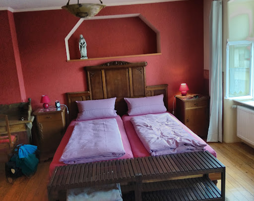 Kleinod zur Übernachtung mit leckerem Essen in einer wunderbarer Wandergegend! Uns erwartete ein unfassbar schön umgebauter Bauernhof mit liebevoll eingerichteten Gästezimmern, großer Dusche und den Möbelflair der 50Jahre. Alles ist so liebevoll abgestimmt auf die "alten Zeiten", ob die Bettwäsche, die Nachtschränke, das Frühstücksgeschirr, die Bistroeinrichtung, ...so viele Klassiker, die man hier entdecken darf. Einfach herrlich, mit welchem Geschick und Geschmack der Besitzer, dieses Bauernhaus mit wunderschönem Biergarten entwickelt hat. Der Gast darf in einem sehr schönen Blumen- und Pflanzenidyll abends ab 18 Uhr außergewöhnliche gut bürgerliche Küche bei tollen Weinen genießen. Der Besitzer ist von Beruf Koch und Bäcker, so dass der Gast schon morgens in seinem Brotkorb herrlich frisch gebackene Brötchenvariationen vorfindet, dass der Wandertag mit einem Lächeln beginnen kann. Es ist ein bisschen wie zur Großmutter nach Hause kommen, denn das Geschirr, die alten Schwarz-Weiß-Fotos an der bunten Tapete, der Würfelzucker, das Müsli in süßen Einmachgläsern, die Milch in einem schönen blauen Milchkännchen ist einfach nur heimelig. Hier arbeiten und halten noch mehrere Generationen zusammen und freuen sich, dem Gast alte Anekdoten zu erzählen. Wir haben den Aufenthalt in vollen Zügen genossen und dabei wunderbare Wanderungen auf eine bewirtschaftete Alm gemacht und zwei gutbeschriebene Burgen (eine Burg mit Hexenmuseum) sehen und erwandern dürfen. Rund um empfehlenswerte Unterkunft für Paare, aber auch Familien, deren Kinder größer sind. Danke für dieses erholsame Wochenende und vielleicht kommen wir zu Ihrem angekündigten...