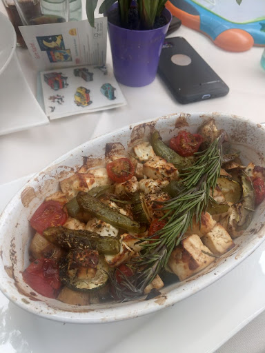 Read moreZwei Sterne mit beiden Augen zu. Leider überhaupt nicht kinderfreundlich, keinen Hochstuhl, nicht mal die Dessertgabel für den Kleinen wurde angeboten. Zusätzlich war es sehr beengt was unter der momentanen Situation auch nicht angenehm ist, wir saßen deswegen freiwillig draußen. Es hatte wohl vorher geregnet, leider war das Rattan der Stühle nicht abgewischt worden #freude. An dem Tag war sichtlich viel los, deswegen lasse ich die lange Wartezeit auf Essen und Getränke mal aus. Der überbackene Feta "glänzte" durch eine große Anzahl an Champions und Feta, zwei halbierten Kirschtomaten und vier schmalen Streifen Paprika zusammen mit einem Rosmarin-Zweig. Wir hatten uns ehrlich gesagt mehr erwartet. Zumindest das es etwas ausgewogener ist. Vielleicht war es auch nur ein schlechter Tag. In Kombination mit dem anderen Gericht, das geschmacklich leider nicht besser Abschnitt und wir beide die Teller nur halb leerten, wird das wohl unser letzter Besuch sein. Ohne weitere Punkte zu nennen die den Rahmen sprengen würden. Das Ambiente kann bestimmt sehr schön sein, wenn das Lokal nicht bis auf den letzten Platz gefüllt wäre und das Personal nicht gänzlich abgehetzt...