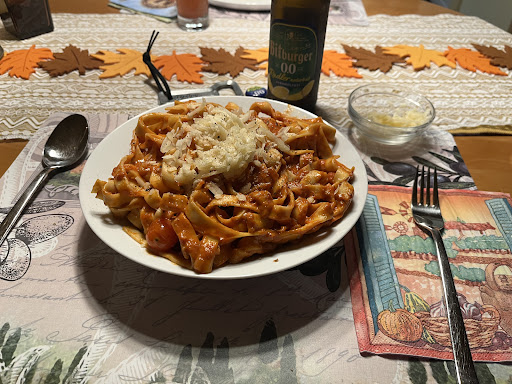Qualitativ war meine Pizza super, da kann ich auch nicht meckern. Perfekt gebackt und reichlich belegt. Leider waren die insgesamt 4 Pizzen wirklich unterschiedlich, so hätte 1 noch etwa 3 Minuten gebraucht, die andere vielleicht 2 Minuten früher aus dem Ofen gemusst. Meine war wie gesagt perfekt, aber anscheinend eher Zufall. Die beiden Nudelgerichte bei uns waren Ok, also weder sehr gut noch schlecht.