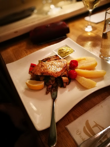 Meine Frau hatte ein Lachsfilet mit Brokkoli und Petersilienkartoffeln. Der Lachs war echt gut, jedoch die Beilagen musste sie nahezu komplett zurückgeben, da sie weder gewürzt waren, noch irgendeine Soße dabei war. Ihr solltet dieses Gericht echt überdenken. Dies haben wir auch unserer Kellnerin gesagt, die diese Kritik sehr positiv aufgenommen hat.