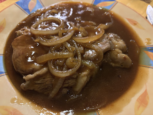 Read moreDer Beilagensalat war sehr lecker. Wir hatten beiden den Zwiebelrostbraten. Einmal scharf einmal normal. Beide Steaks waren ca. 1cm dick und Medium gebraten, so wie gewünscht. Die Soße war etwas schlapp gewürzt. Pfeffer und Salz standen aber auf dem Tisch. Bei dem scharfen Steak war etwas Peperoni in die Soße geschnitten. War nicht wirklich scharf. Bei meinem Steak hatte ich ein ganz schlechtes Stück bekommen. Es war mehr Fett als Fleisch. Vielleicht lag die schlechte Qualität daran, dass wir mit dem Schlemmerblock essen...