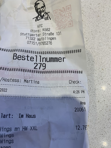Was treated terribly by one of the workers. I had to wait at the counter for over five minutes without being attended to. Not even hello or I’ll be with you shortly. I confronted her and she harshly pointed at her order screen and said she was busy. I don’t mind waiting but her attitude was terrible. Anyways she was hostile through out. Complained to the “Schichtleiter” he was making excuses on her behalf not really interested in my narrative. What I wanted from complaining was that she be spoken to later. Anyways I was asked to submit a Formular for the complaint. I had difficulty with the Formular asked him for assistance and was told his shift had ended so he wasn’t available. I had to wait for the manager for the next shift (about extra 40 mins)
