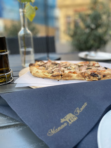 Read moreEs war unser erster und letzter Besuch im Mamma Roma. Wir hatten einen Tisch reserviert, für 19 Uhr. An diesem Abend war es sehr windig und für uns einfach zu kühl zum draußen sitzen. Als wir dort ankamen, war in dem Restaurant kein einziger Tisch. Lediglich neben der Bar, an dem bereits eine Gruppe saß, ansonsten war NUR draußen gedeckt. Auf die Frage, ob wir drin oder draußen sitzen wollten, sagten wir, gerne drin. Es wurde laut auf Italienisch gesprochen und wild umher gefuchtelt, bis dann zwei Mitarbeiter mit einem Tisch von draußen kamen und ihn mitten in das leere Restaurant stellten... Man fühlte sich wie bestellt und nicht abgeholt. Nunja, bis wir die Speisekarte erhielten vergingen bestimmt nochmal 10 Minuten... Der (laute)Umgangston zwischen den Mitarbeitern stoß mir ziemlich negativ auf, sodass ich das essen (Pinsa war sehr lecker!) mit meinem Verlobten nur wenig genießen...