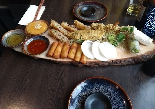 Read moreWir sind zufällig auf das Restaurant aufmerksam geworden und können es wirklich sehr empfehlen. Das Restaurant hat vor 6 Monaten eröffnet und wird von einem sehr sympathischen und jungem Team geführt. Die Speisekarte ist sehr reichhaltig und es gibt auch eine große Auswahl an Sushi. Wir hatten als Vorspeise vegetarische Frühlingsrollen und vegetarisch gefüllte Teigtaschen. Zur Hauptspeise hatten wir Gemüse mit Currysauce und Kokosmilch und Gemüse mit Mangosauce und gebackene Ente jeweils mit Reis. Die verschiedenen Gerichte kann man jeweils mit verschiedenen Beilagen toppen. So kann jeder selbst entscheiden ob er lieber vegetarisch oder eben mit Fleisch bzw Garnelen oder Lachs essen möchte. Das Essen hat sehr lecker geschmeckt und auch die Portionen waren ausreichend. Wir kommen sicher mal wieder zum Essen in...