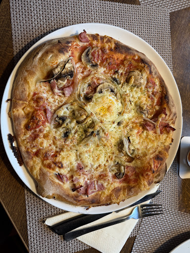 Read moreIch bin etwas hin und hergerissen...es hat gemütlichen Charme, obwohl ich persönlich nicht auf so viel Dekoration stehe und dieser altbackene Stil mich an die Wirtschaft meiner Großeltern erinnert hat, 30 Jahre her. Das wir das Restaurant gefunden haben, hatten wir nur Google zu verdanken. Wir haben in Waldbröl Urlaub gemacht und das Restaurant liegt sehr versteckt an einer Tennishalle. Wir mögen Tiere sehr, unsere Katzen laufen bei uns über Tische und Bänke. Ich hadere etwas mit mir, ob es in einem Restaurant wirklich sein muss. Er ist wirklich süß und ganz bestimmt nicht beängstigend. Der Service war freundlich, die Wartezeit war im Rahmen. Ich habe Personen mit Karte bezahlen sehen, wir sollten Bar bezahlen...in der heutigen Zeit unüblich. Das Essen hat uns allen gut geschmeckt. Wir hatten Pizza, Pasta und Fleisch. Teils bekamen wir Diskussionen aus der Küche mit, es wird dort Familie gelebt. Was wir schon lange nicht erlebt haben, dass man einen Absacker aufs Haus bekommt. Mir ist noch etwas aufgefallen, diesbezüglich stand ich per Email in Kontakt. Ich hatte etwas den Eindruck, dass man sich ein wenig herausreden wollte, gerade in der jetzigen Zeit sollte man auf gewisse Dinge einfach...