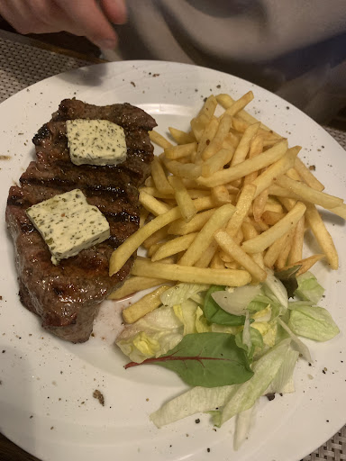 Essen: 3 Sterne Ich hatte ein Pfefferrahm-Steak mit Kroketten und einem kleinem Beilagensalat. Das Steak war auf den Punkt gegart und sehr gute Qualität. Leider gab es keine Pommes mehr und die "Ersatz" Kroketten waren TK und sehr wenig Die Sauce war gut aber auch nicht mehr. Der Beilagen Salat war Standart. Daher gibt es leider nur 3 Sterne.